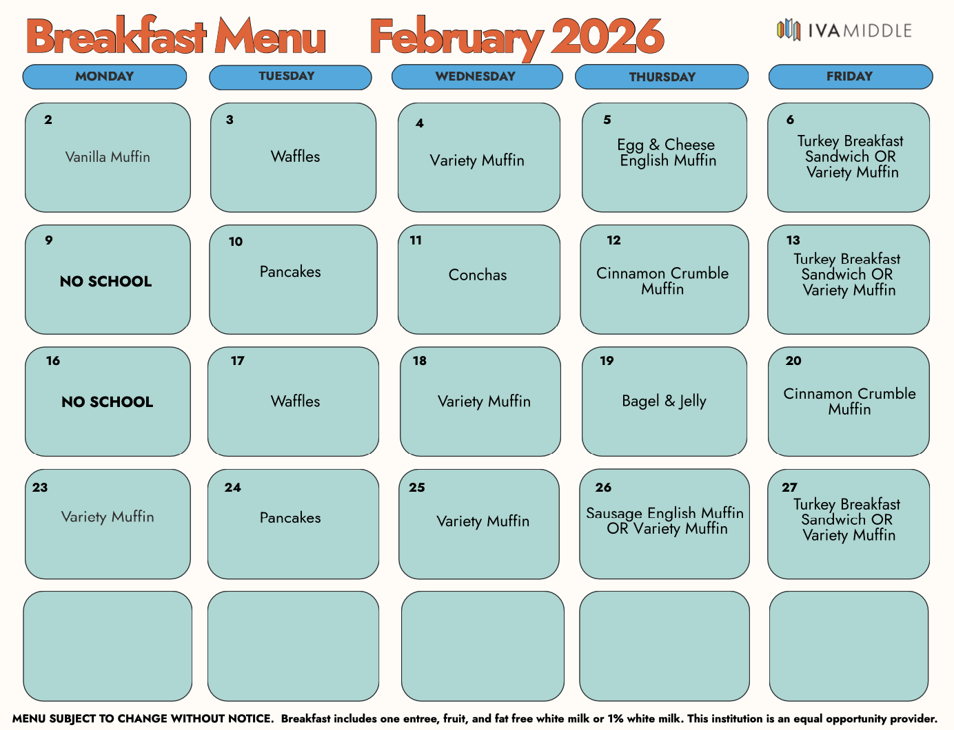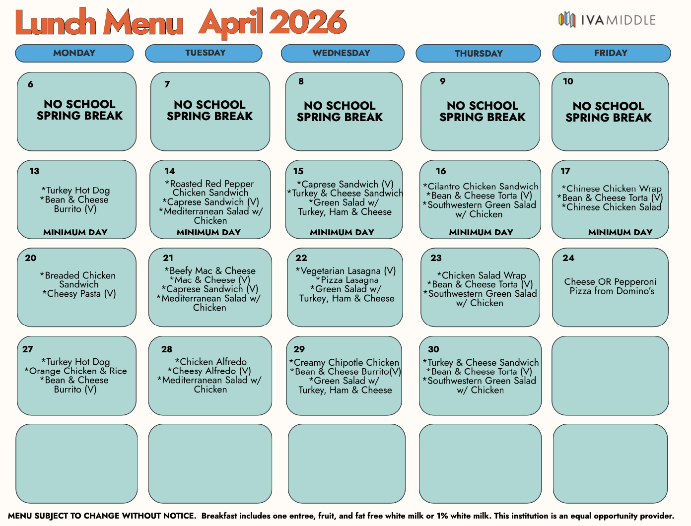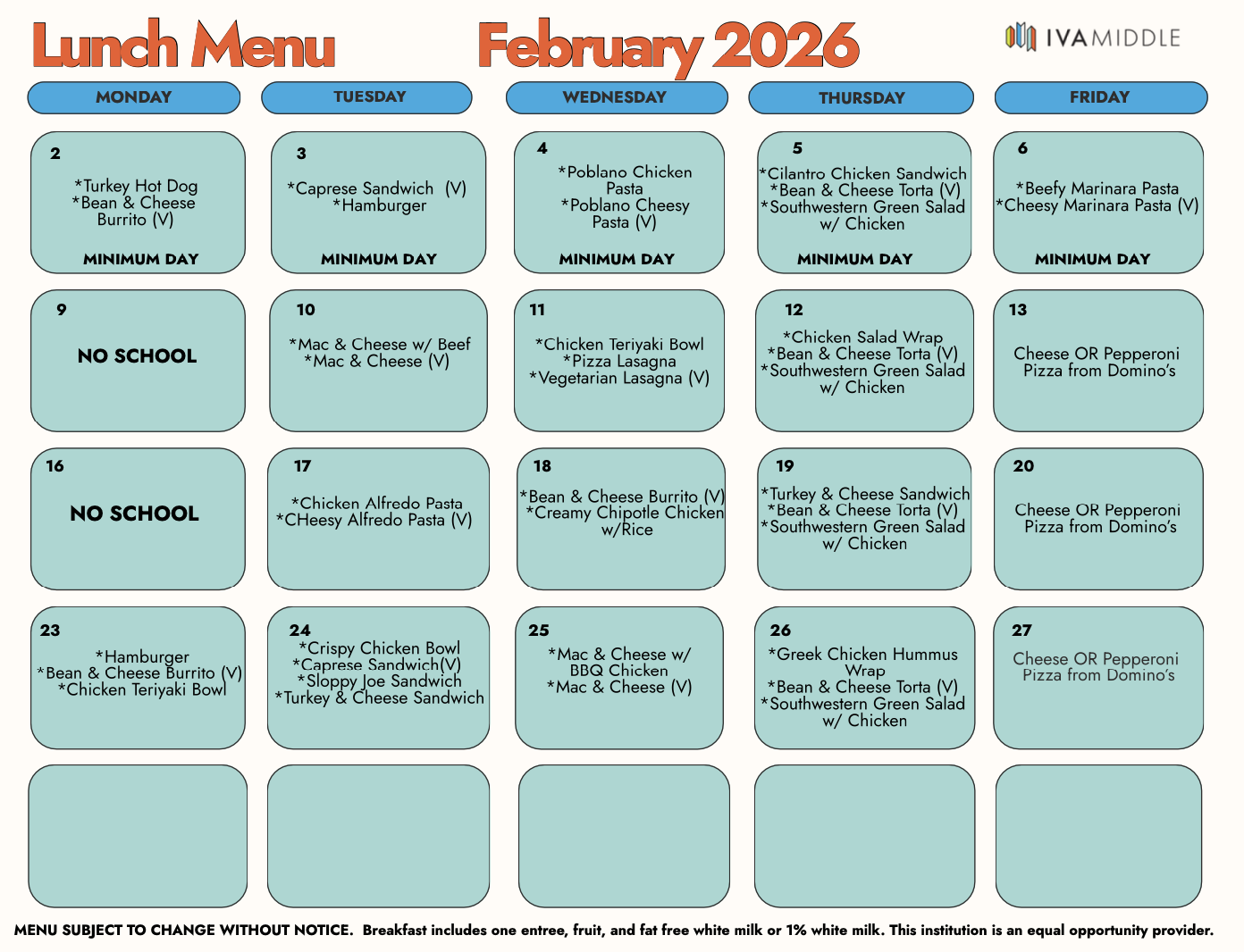 See the Meal Program FAQ Document for information specific to IVA’s Meal Program FAQ_for_Meal_Program_2025-2026.pdf
